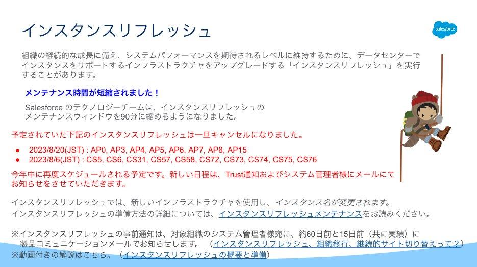 新しい日程はTrustサイト、および、Salesforceからお客様へメールで通知をさせていただきます。