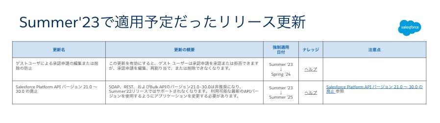 続いて、Summer ’23 のリリースノートの更新情報をご紹介します。