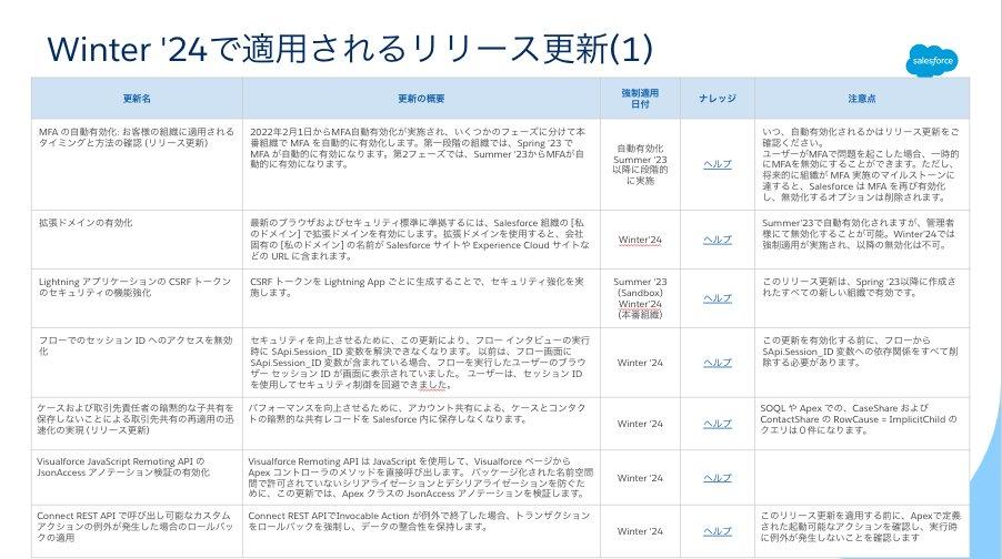 - 強制適用のスケジュールが変わりました。元は Winter ’24 の予定でしたが、Spring ’24 に変更されました。