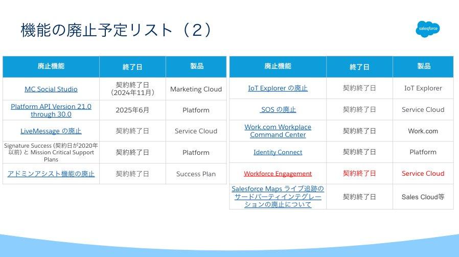 - Salesforce コア製品に関する重要な技術情報