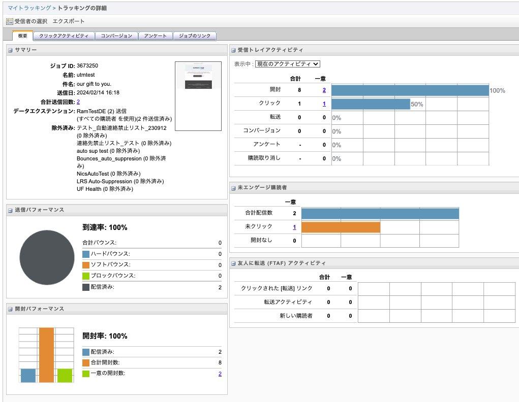 - éä¿¡ãžã§ãããšã«ãéä¿¡æ°ãåããŠã³ã¹ãå°éæ°ãéå°æ°ãã¯ãªãã¯æ°ãã¯ãªãã¯ããããªã³ã¯äžèЧãªã©ã確èªããããšãã§ããŸã