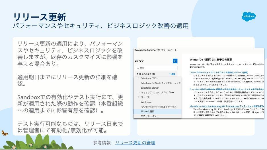 - 「Salesforce の運用に関する重要なお知らせ」の概要を知ることができます