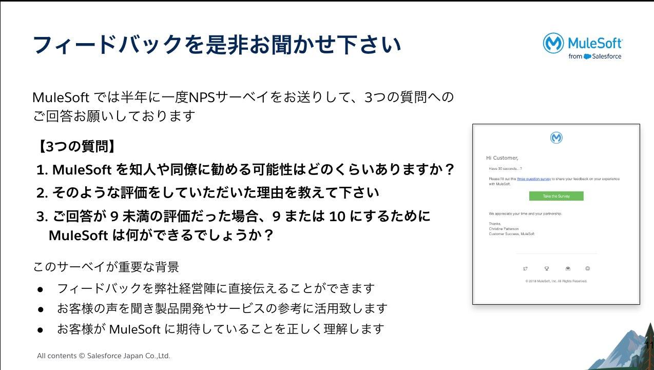 MuleSoftが半年に一度実施するNPS(ネットプロモータースコア)の調査のご協力お願いについてご説明しています。