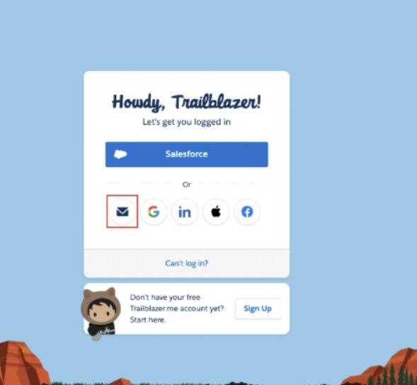 - 注: 現在、Trailblazerのアカウントをお持ちでない MuleSoft のお客様は、Trailblazer.me にログインする際は Email を選択する必要があります。