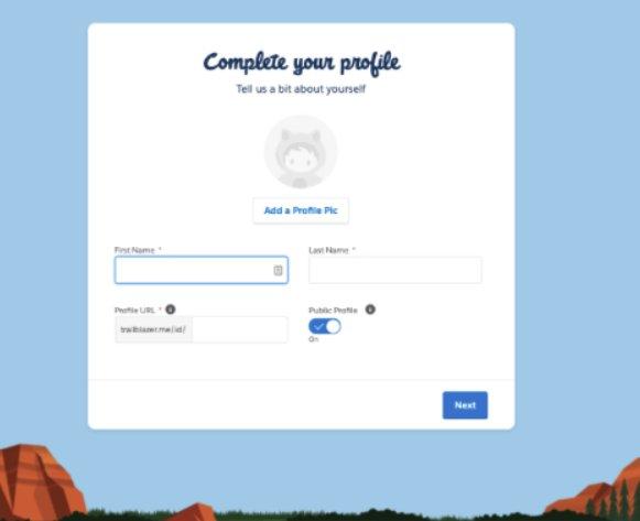 - 注: Trailblazer プロファイルをお持ちでない場合は、次のセクションで説明する手順に従って、MuleSoft アカウントのEmailアドレスに関連付けられたEmail アドレスを使用して Trailblazer アカウントを作成します。 Trailblazer アカウントを作成し、Mulesoft Email を追加する方法については、Get Started with Trailblazer を参照してください。