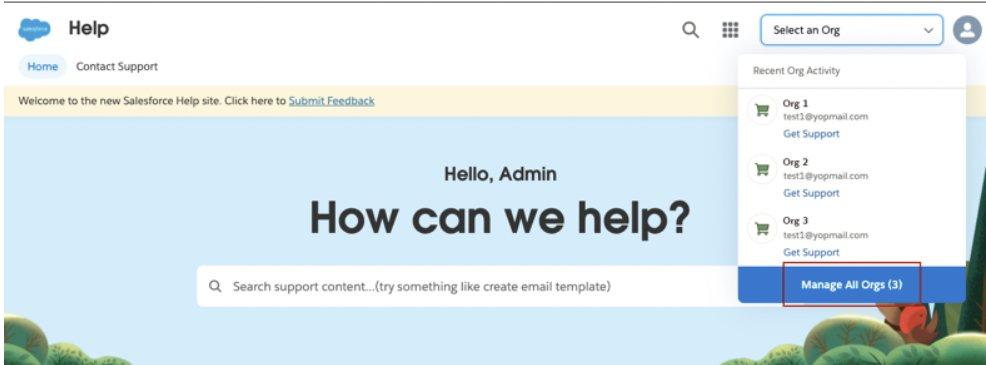 ヒント: 複数の組織がある場合は Manage All Orgs" ページにアクセスしたら、サポートのケースを作成するために正しい組織を選択していることを再確認してください。組織を検証する 1 つの方法は、予想されるサポート レベルを確認することです。たとえば、SigMS を持つ組織は MuleSoft Signature として処理され、また PremMS を持つ組織は MuleSoft Premier として処理されます。選択したテナントの製品も MuleSoft 製品である必要があります (Anypoint、RPA や Composer など)
