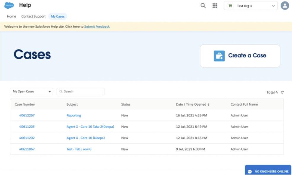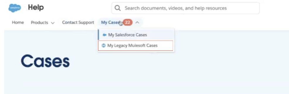 注: My Cases ドロップダウンを使用して My Legacy MuleSoft Cases を選択すると、Salesforce ヘルプポータルから古いサポートケースにアクセスすることもできます。