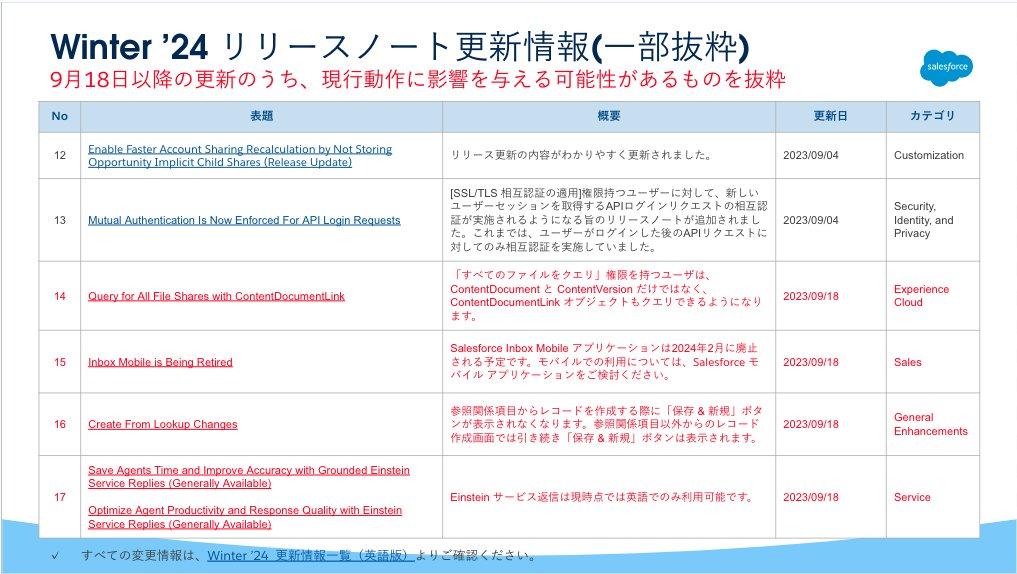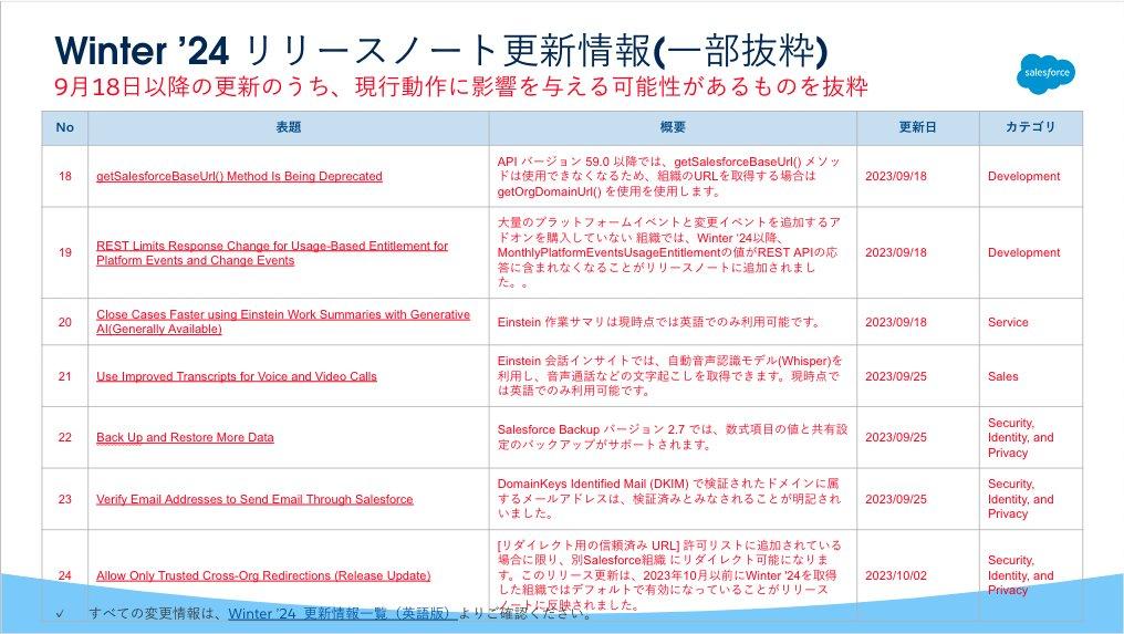 続いて、Winter'24のリリースノートにおける更新情報のご紹介です。
