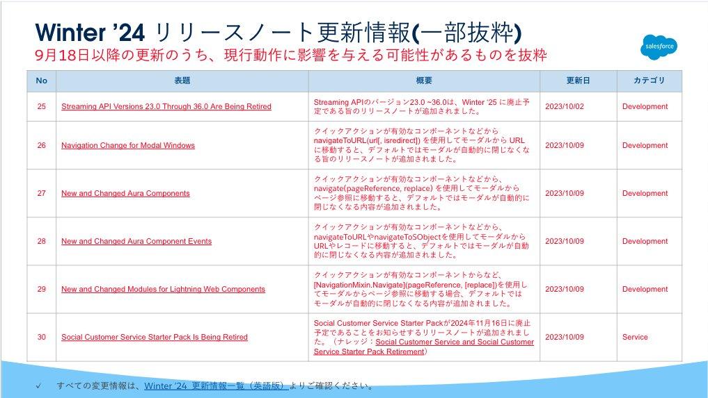 - Winter '24 リリースノートの更新情報