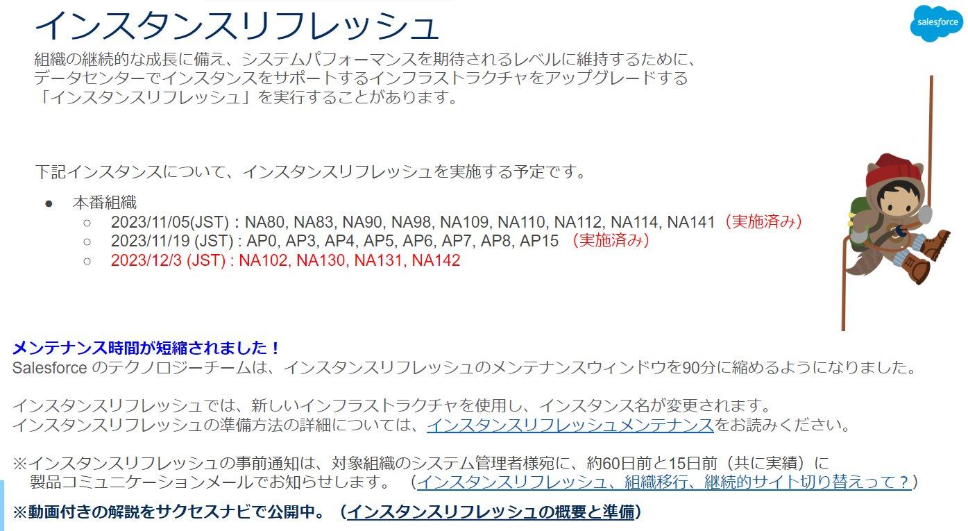 (2023年11月) Salesforceの運用に関する重要なお知らせ