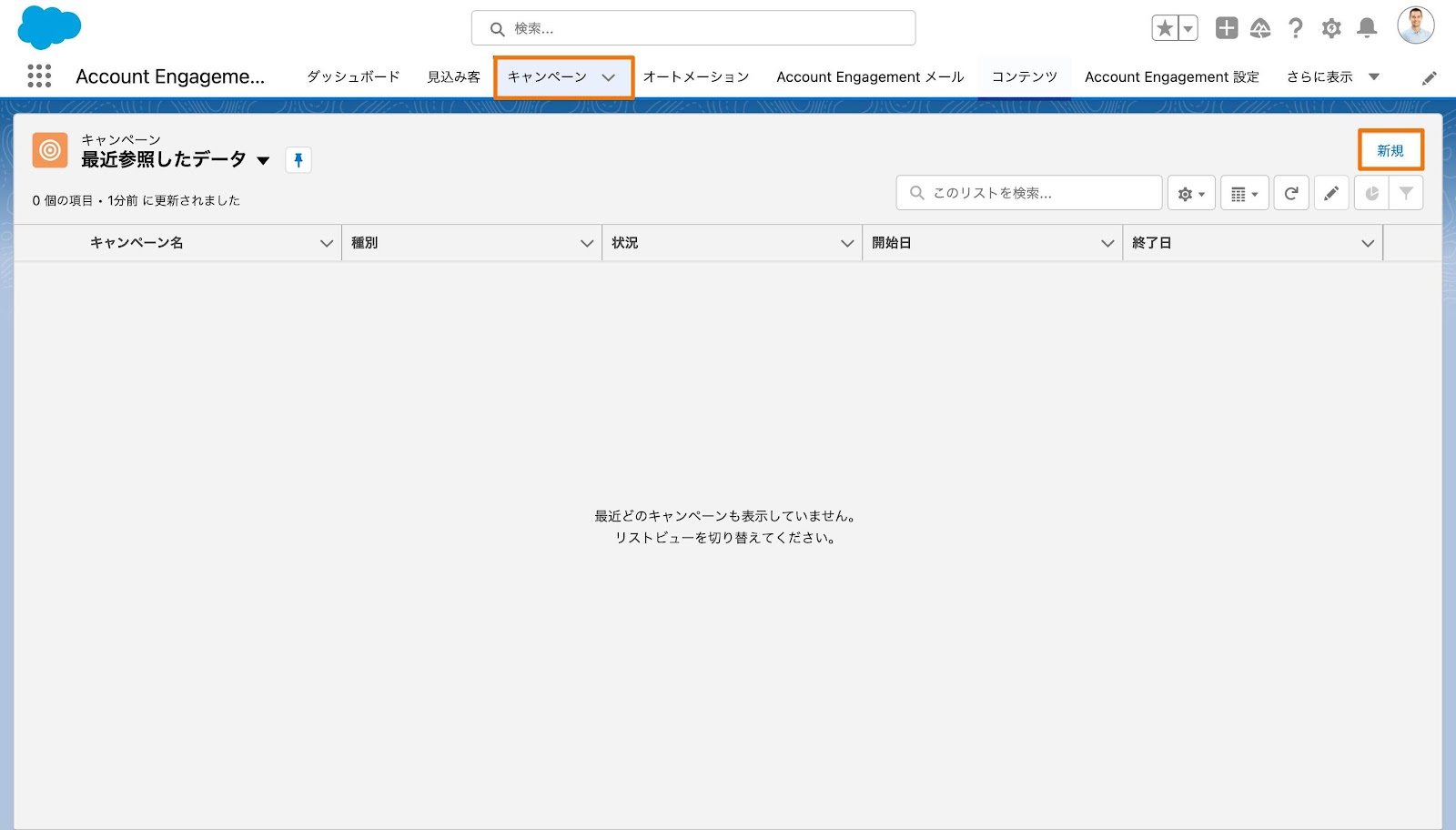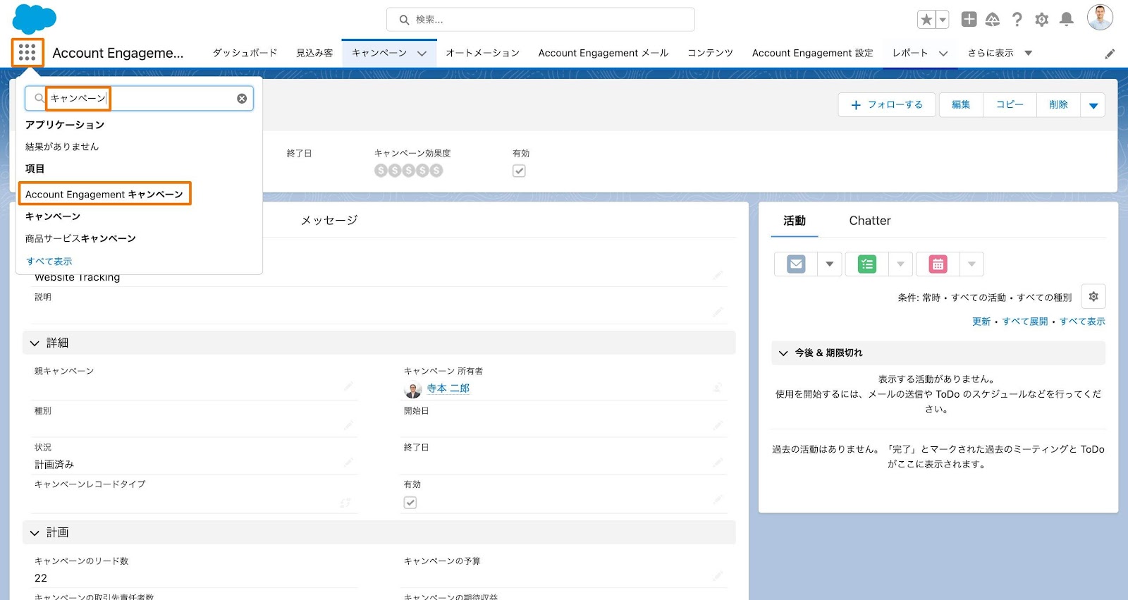 6. アプリケーションランチャーから「キャンペーン」を検索 > [Account Engagementキャンペーン]をクリック