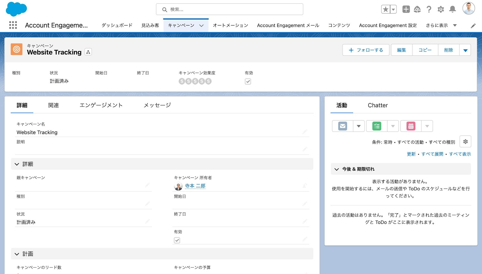 ここでは、Account Engagementに標準で搭載されているWebsite Trackingに対応するSalesforceキャンペーンを新たに作成し、Account EngagementのWebsite Trackingキャンペーンと接続する手順を説明します。