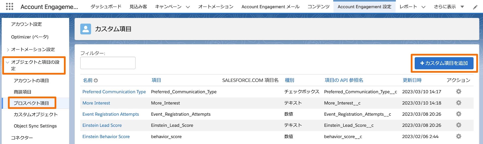 Account Engagementでカスタム項目を作成する