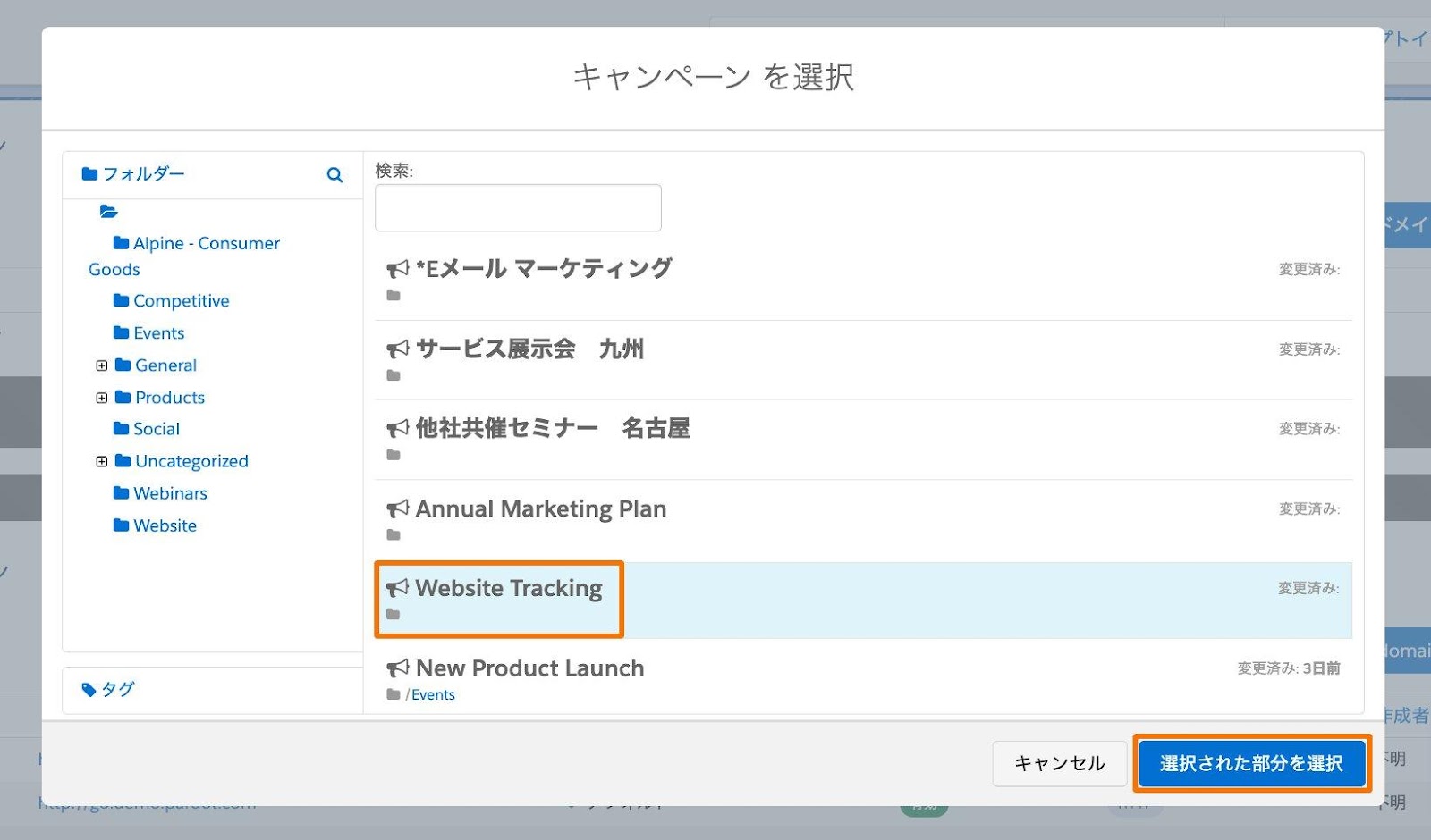 ※下記ではサンプルとして「Website Tracking」を選択しています。自社の該当のキャンペーンをご選択ください。