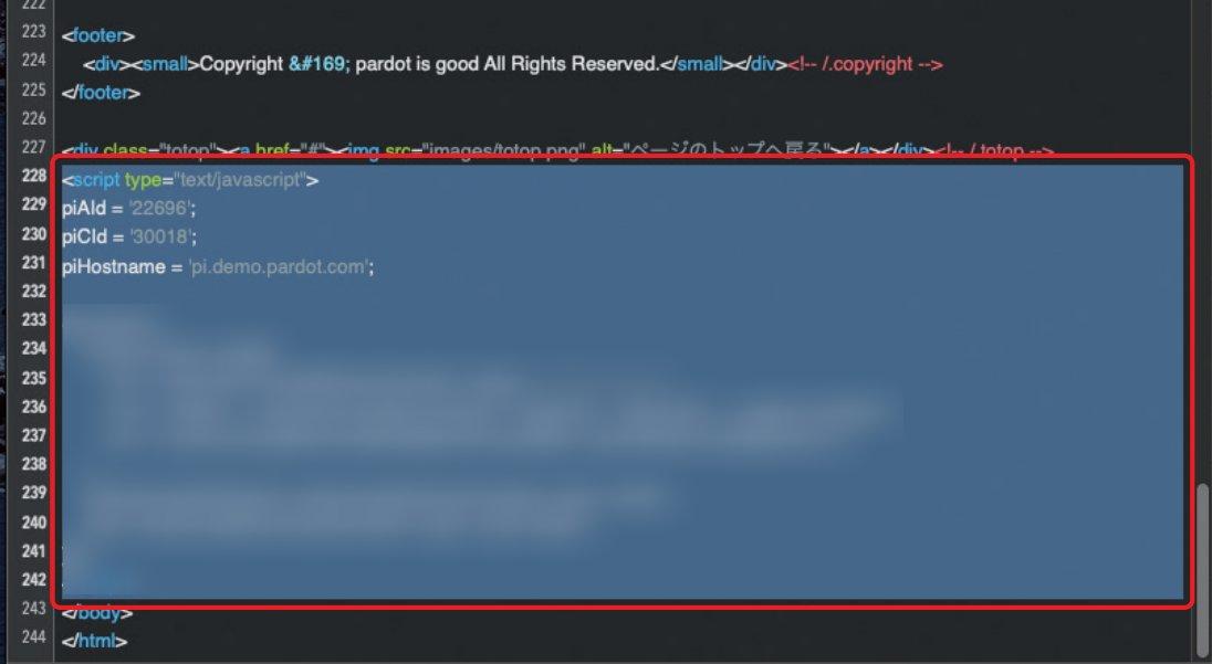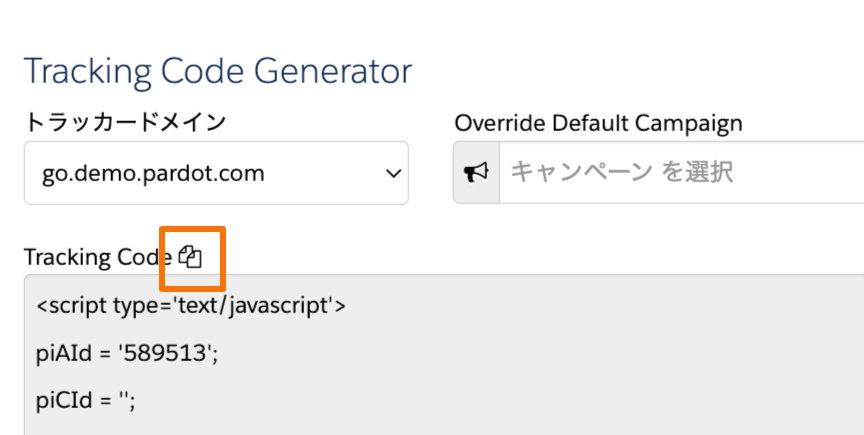 - Webサイト上における見込み客(Visitor/Prospect)のアクティビティを追跡するため、Webサイトに設置する「ファーストパーティクッキーでのトラッキングコード」を設定します。