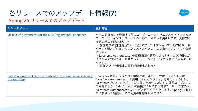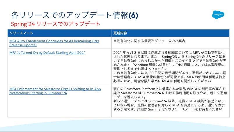 続いて、Spring '24リリースでのMFAに関する情報です。