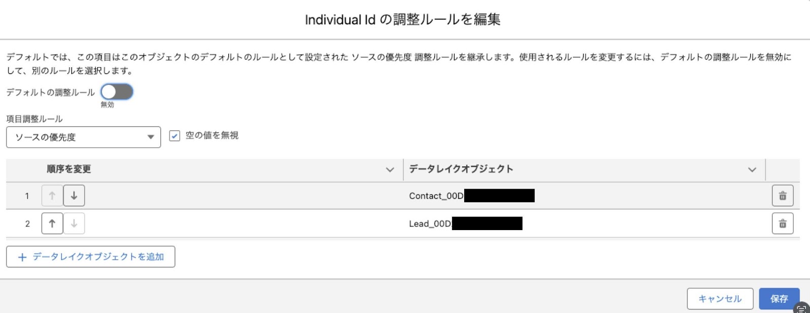 [Individual ID] 項目では、[ソースの優先度] を利用します。