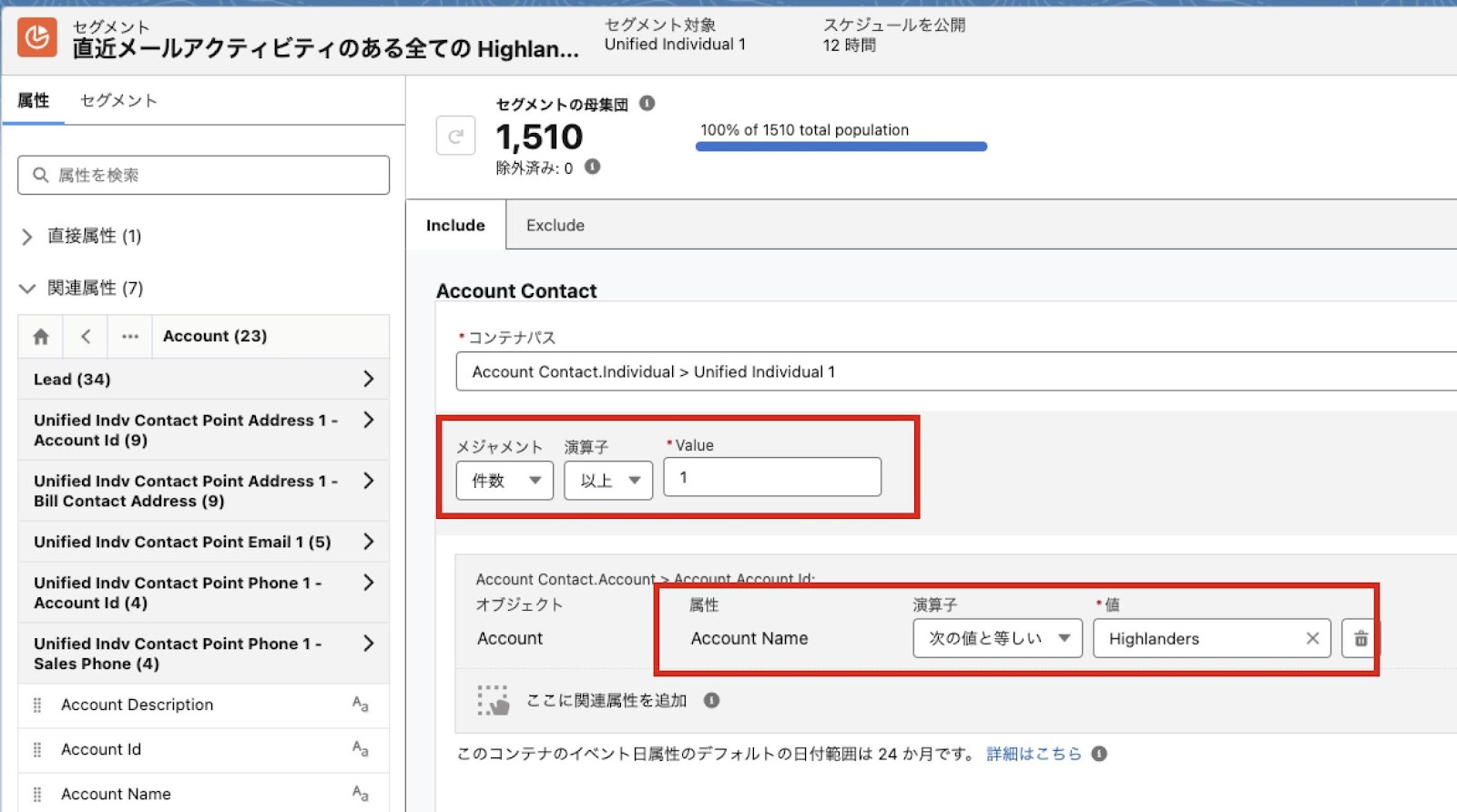 - 最大 7,500 個のオブジェクトを基にセグメントの検索条件を定義できる*