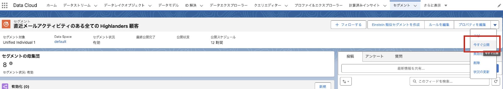 条件を指定したら、[今すぐ公開] よりセグメントを公開します。