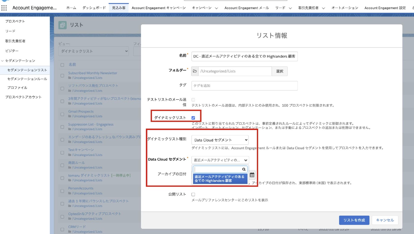 - Data Cloud セグメントを基に Account Engagement ダイナミックリストを作成する方法