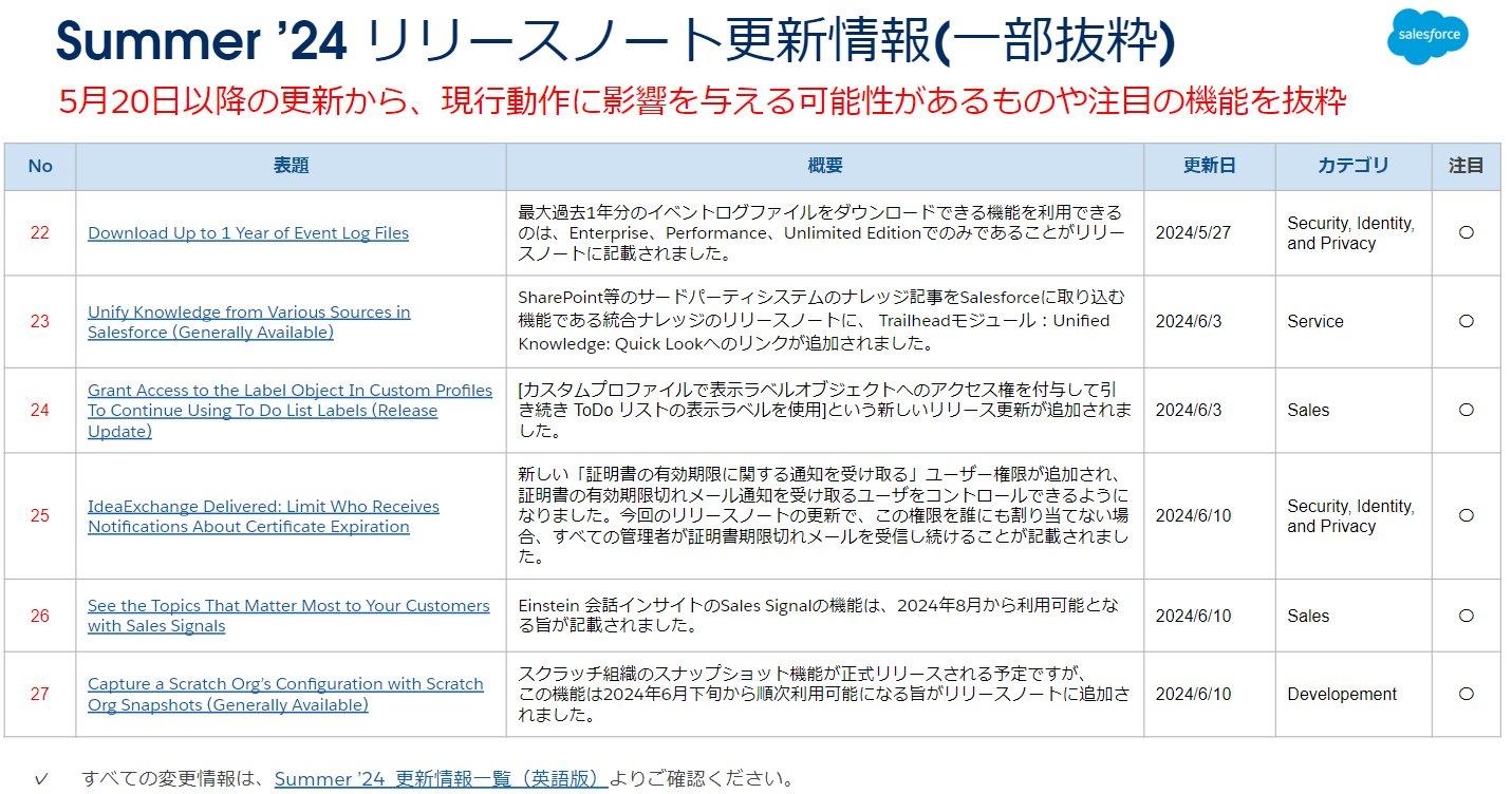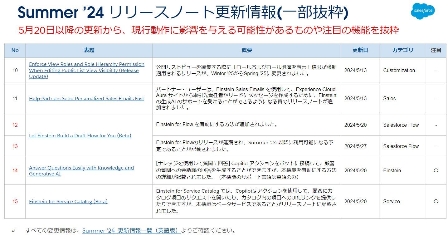 続きまして、Summer '24リリースノートの更新情報です。