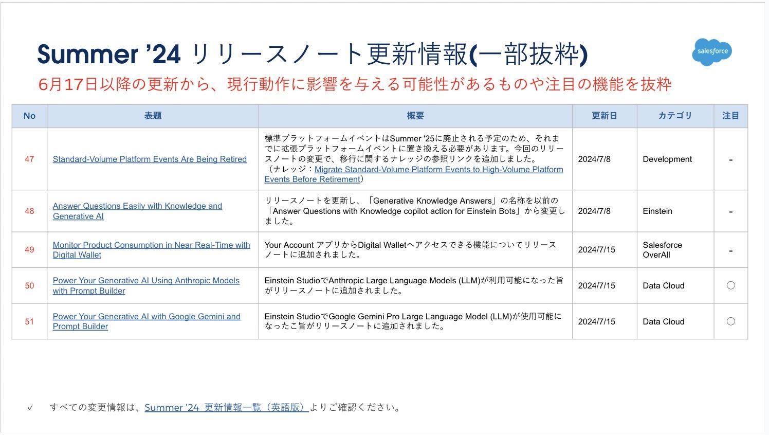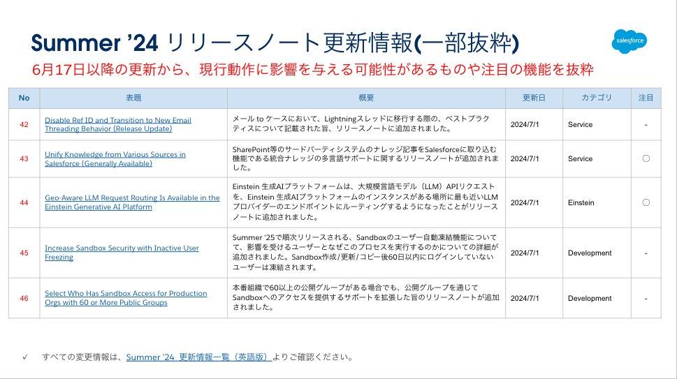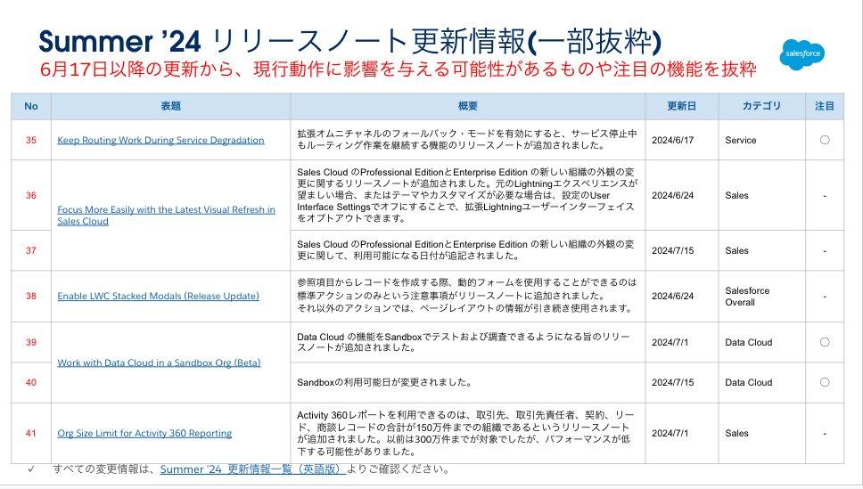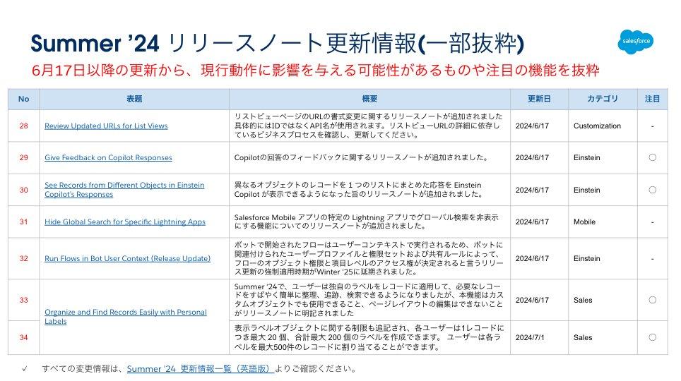 最初は、Summer ’24 リリースノートの更新情報です。