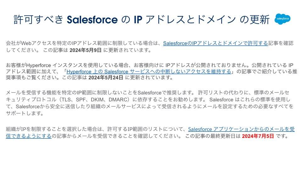 (2024年7月) Salesforceの運用に関する重要なお知らせ