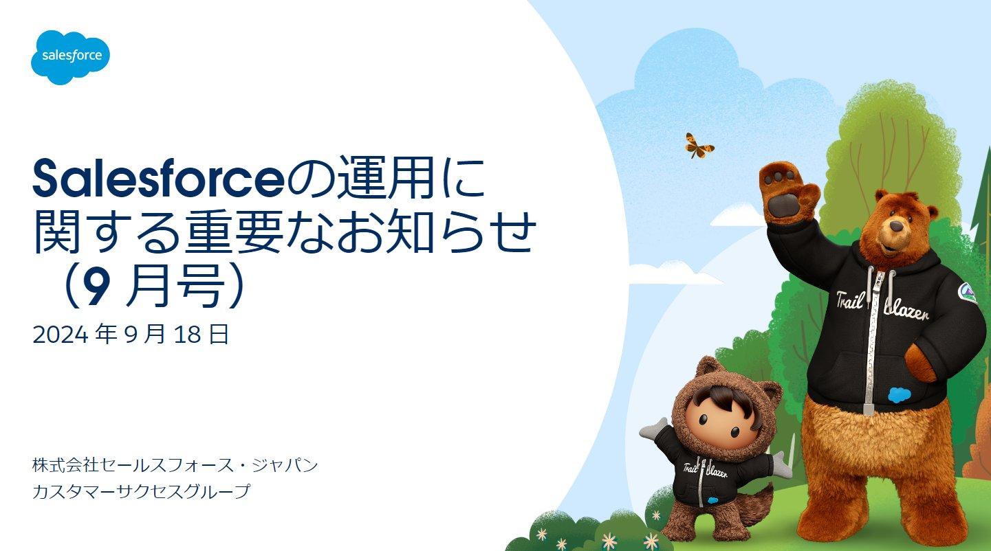 本記事は「 Salesforce の運用に関するお知らせ」の 9 月号となります。