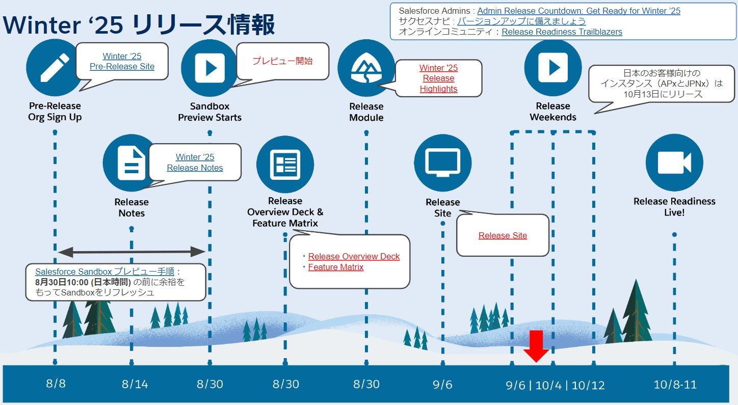 日本のお客様向けのインスタンスについては、日本時間で 10 月 13 日に本番組織へ Winter ’25 がリリースされます。