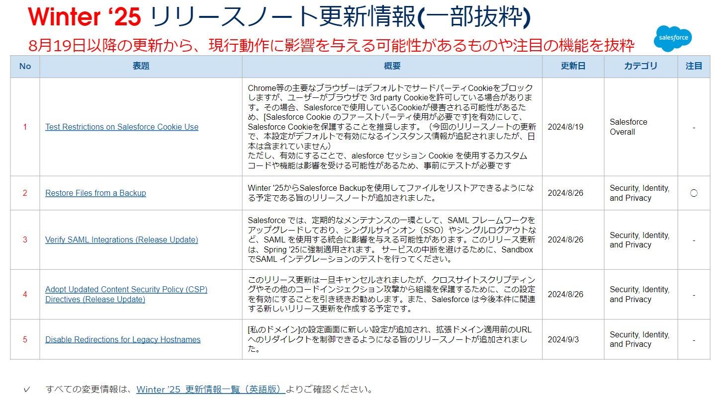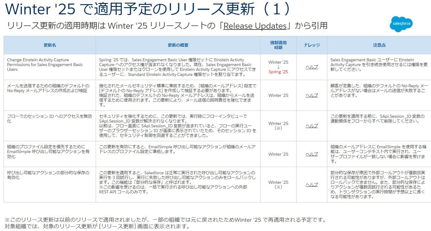こちらでは Winter ’25 に適用されるリリース更新に関する更新情報のご紹介します。