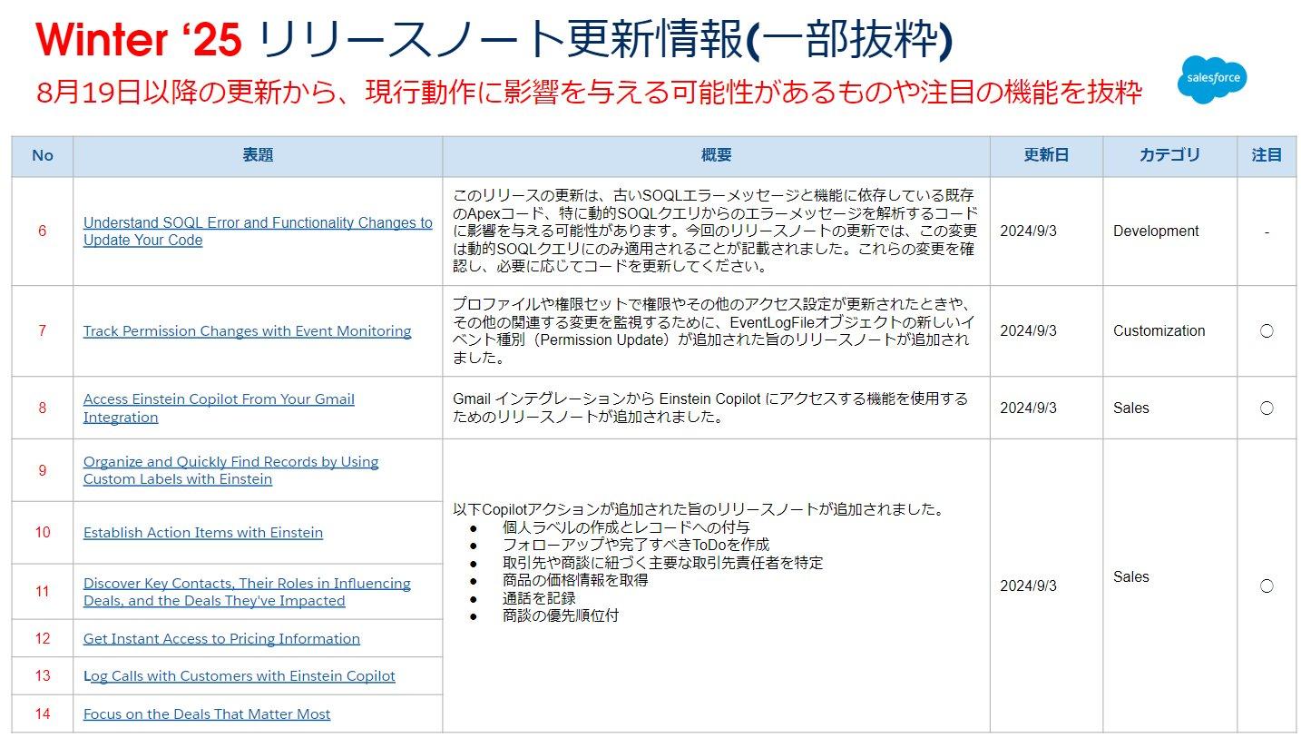 続いて、次期バージョンであるWinter ’25 のリリースノートに関する更新情報です。