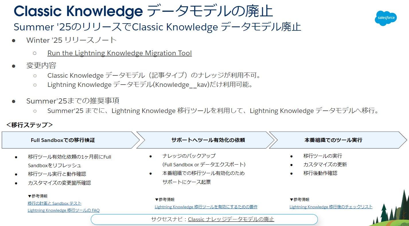 引き続き、Winter ’25 のリリースノートにも記載されていますので、Lightning Knowledge への移行をご計画の際に、是非ご確認ください。