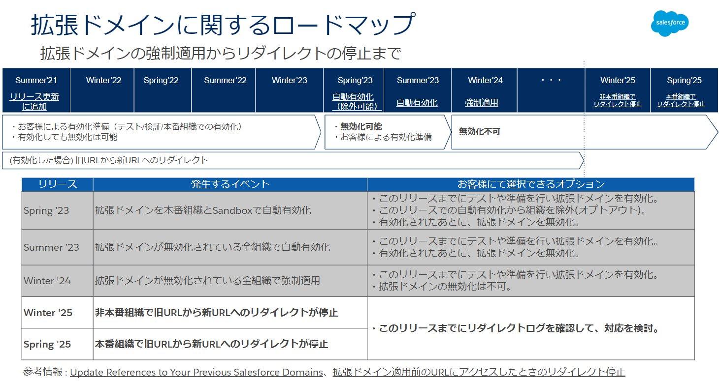 前回、ロードマップの変更があり Winter ’25 では Sandbox 等の非本番組織での旧 URL から新 URL へのリダイレクトが停止、Spring ’25 で本番組織での旧 URL から新 URL へのリダイレクトが停止と変更となりました。