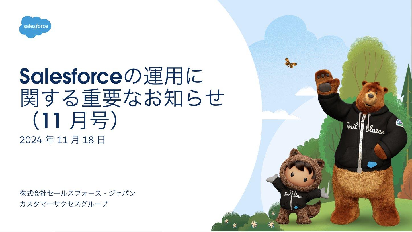 本記事は「 Salesforce の運用に関するお知らせ」の 11 月号となります。