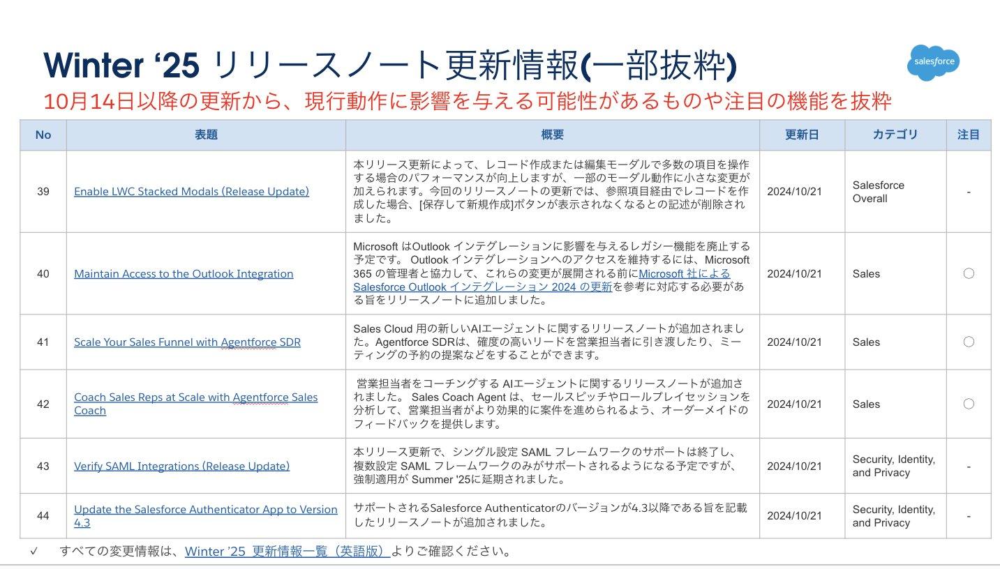 続いて、Winter ‘25のリリースノート更新情報です。