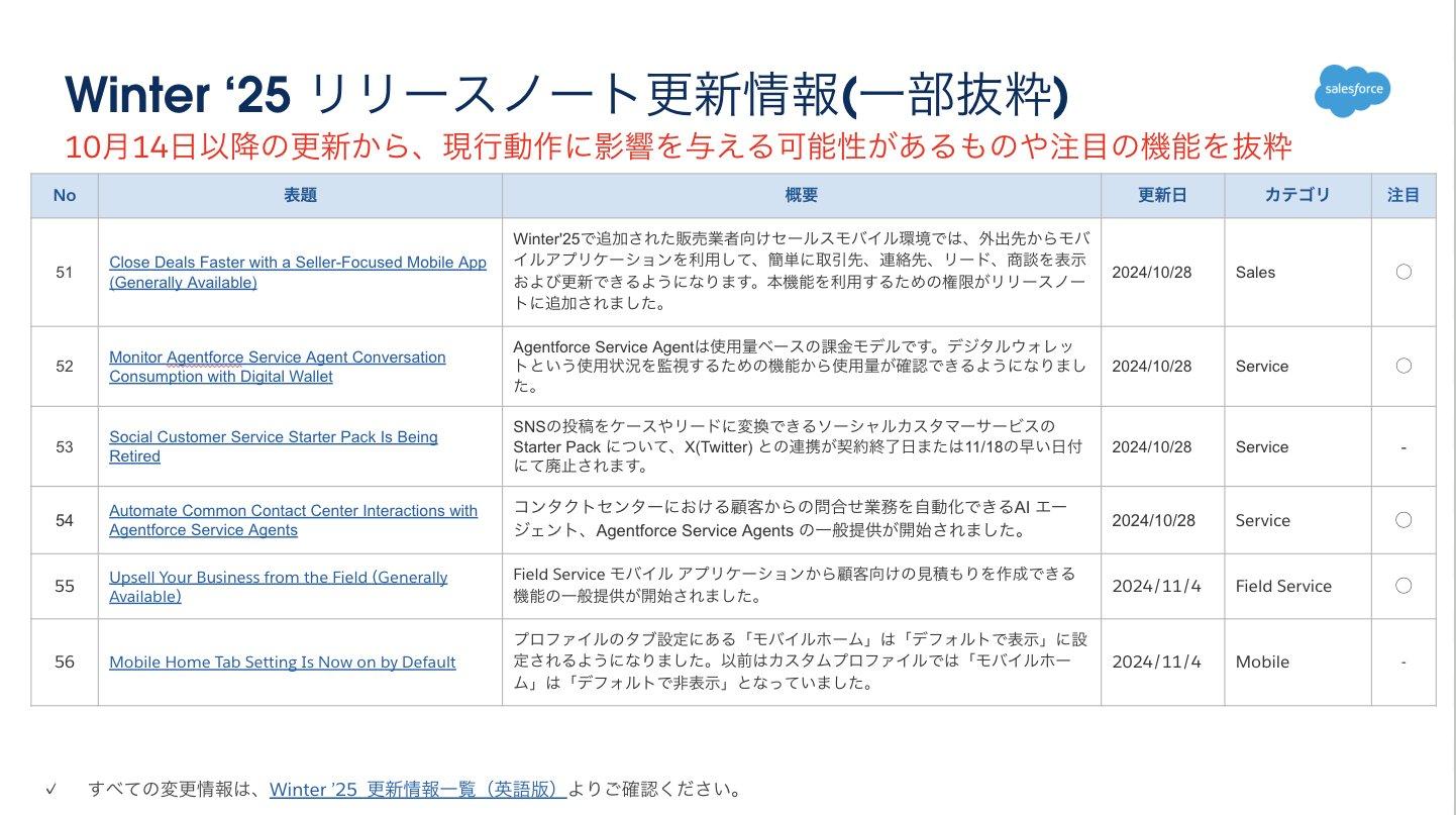 サクセスナビの「Winter ’25 注目の新機能」ページに日本語版 Release Overview Deck が追加されました。「リリースノートではイメージが湧かない・・・」というお客様は、視覚的にわかりやすくなっていますので、ぜひご確認ください。