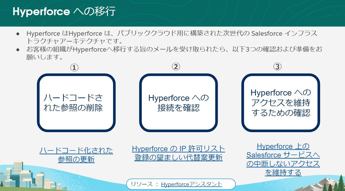 お客様がスムーズに移行いただけるように[Hyperforce アシスタト]という機能が提供されておりますので、ぜひご確認をお願いします。