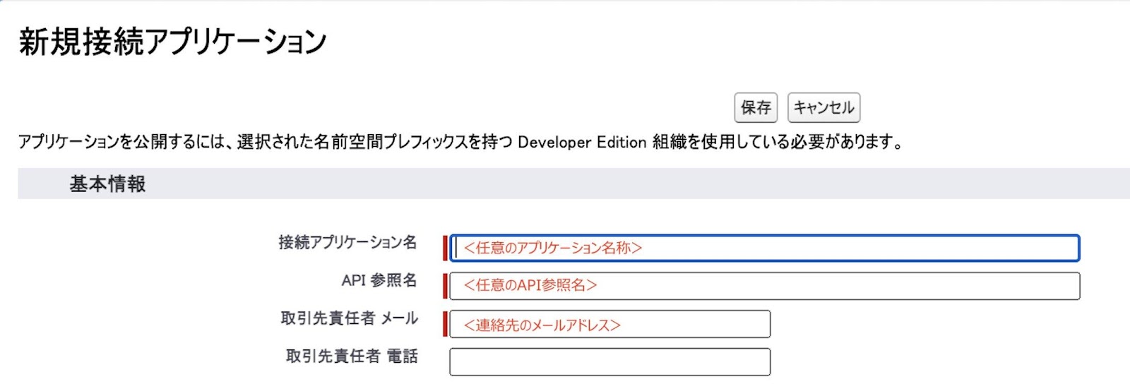 4.接続アプリケーション名・API参照名・連絡先のメールアドレスを設定します。