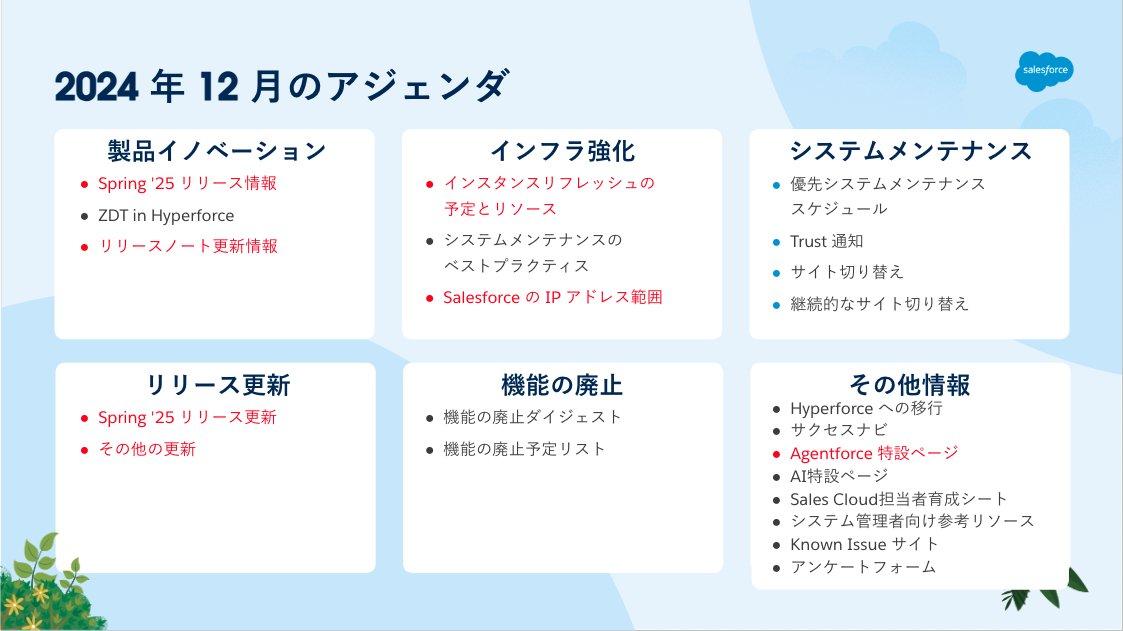 本記事は「Salesforce の運用に関するお知らせ」の 12 月号となります。