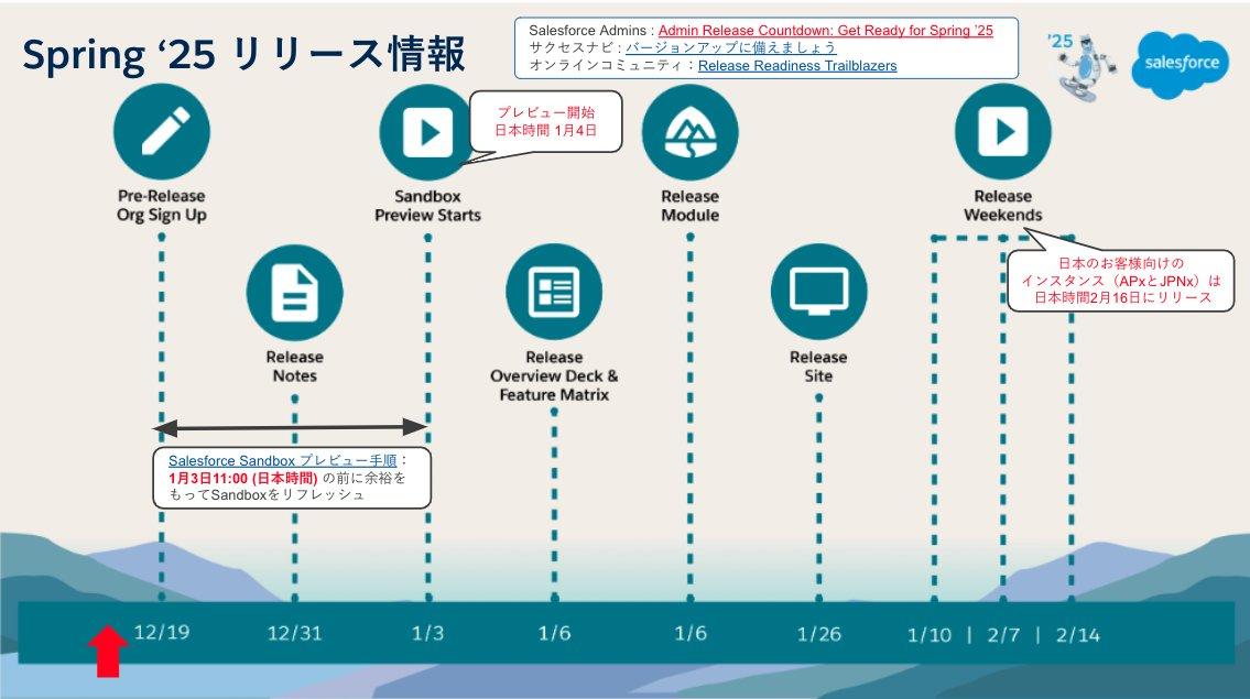 Spring’25 リリース関連スケジュールは以下の通りです。(いずれも日本時間)