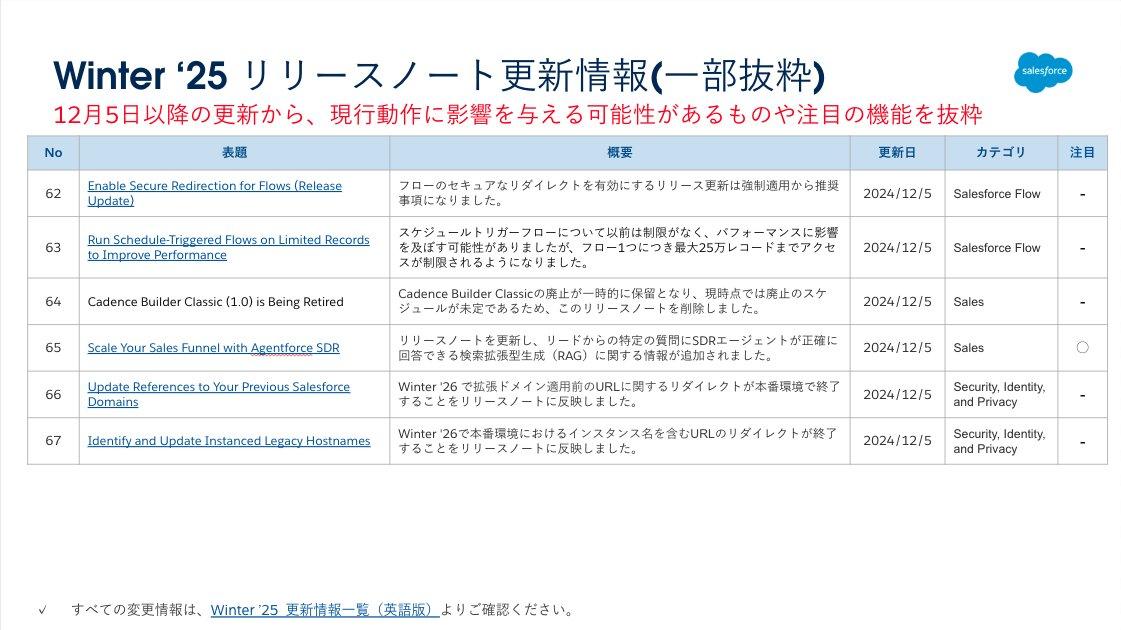 続いて、Winter ’25 のリリースノート更新情報です。