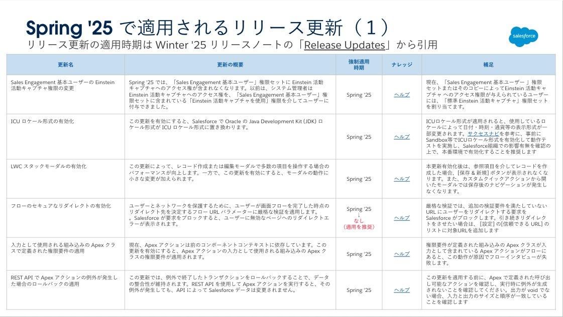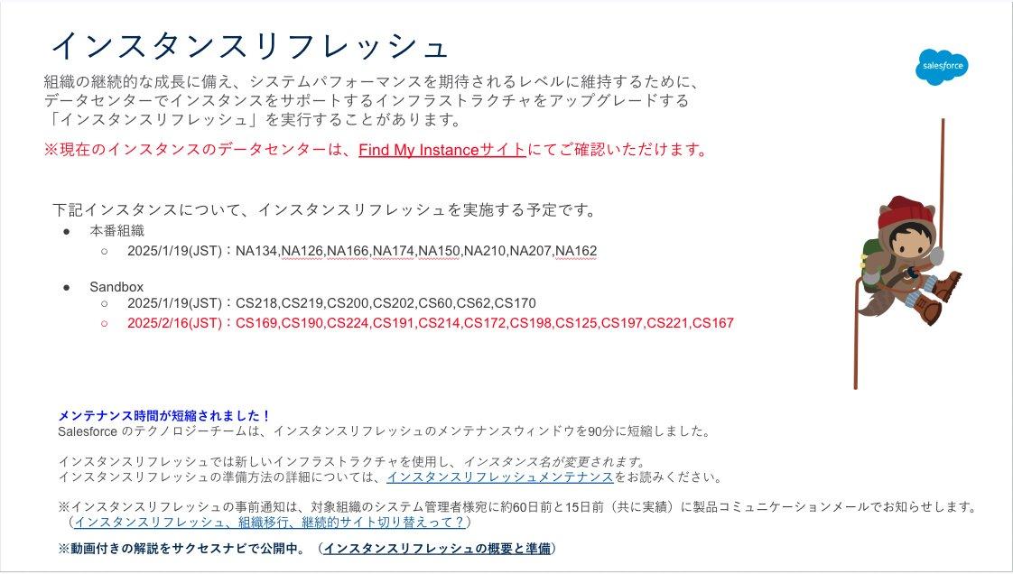 - 2025 年 2 月 16 日 : Spring ‘25リリース予定(主に日本のお客様にご利用頂いているインスタンス)