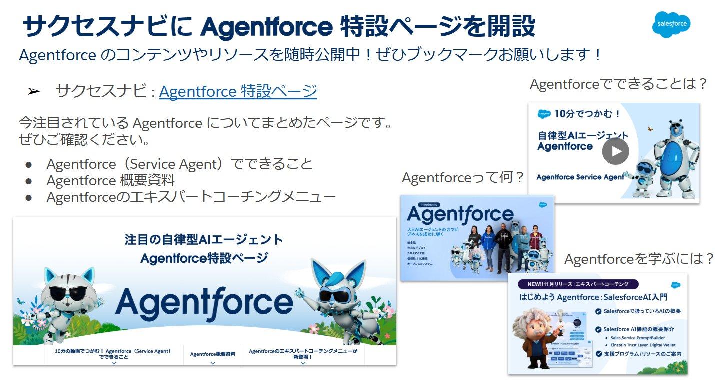 続いて、サクセスナビに追加された Agentforce 特設ページのご紹介です。
