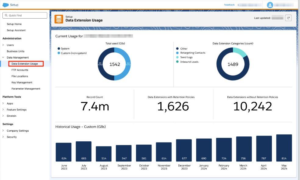 [Setup] > [Data Management] > [Data Extension Storage]