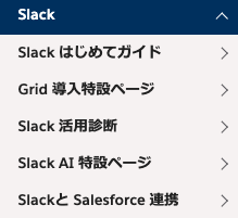 サクセスナビに遷移後、左のメニューバー内「Slack」から自社に最適な情報をみつけてください。