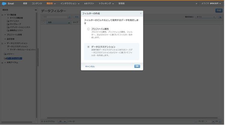 - フィルタの元となるデータエクステンションを選択し[OK]をクリック