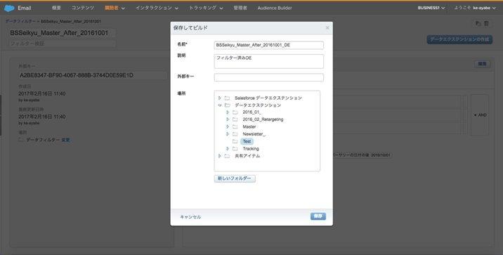 フィルター済みデータエクステンションの名前や格納先フォルダなどを設定し[保存]をクリック