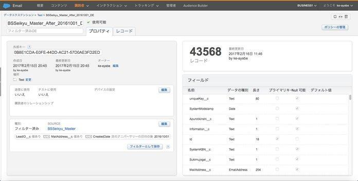 設定した条件でフィルターされたレコードが格納されてフィルター済みデータエクステンションが生成される
