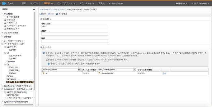 - Email Studio > 購読者 > データのリレーションシップヘアクセス