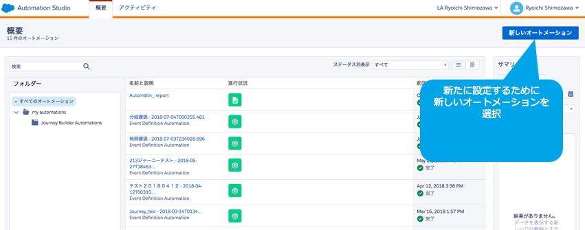- [概要]タブへ戻り、右上の[新しいオートメーション]を選択